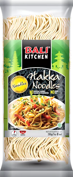 Bali Kitchen Hakka Noodles are great for Asian-style dishes as they are thin cut, with a characteristic springy texture. The egg-free formula makes them vegan-friendly. They are suitable for soups as well as stir fry or dry applications.
