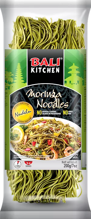 Bali Kitchen Moringa Noodles are all-natural and free from preservatives, artificial colour, or flavour.